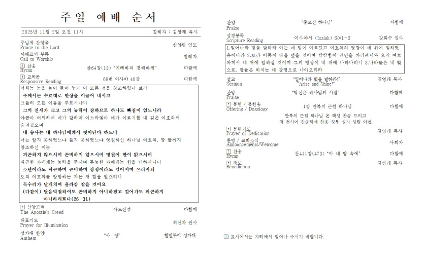 2025년 11월 2일 주일 예배 주보 > 주보