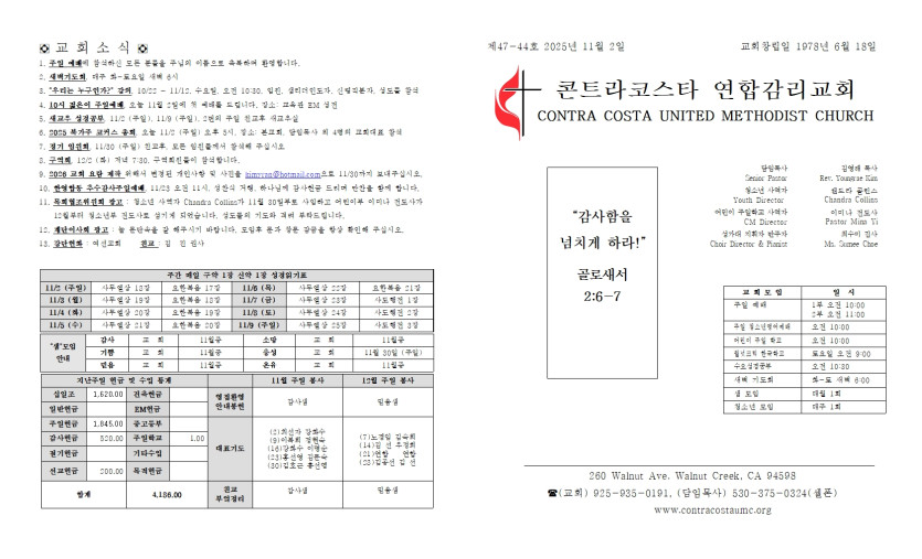2025년 11월 2일 주일 예배 주보