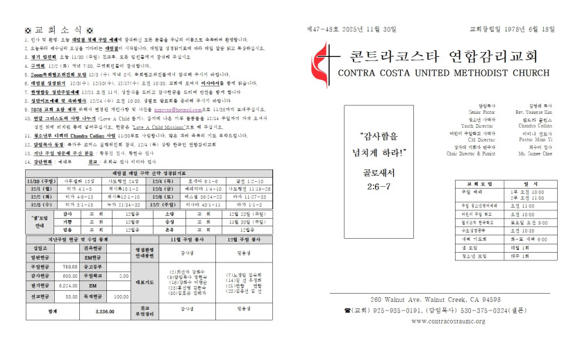 - 이전글2025년 12월 6일 대림절 둘째 주일 예배 주보 25.12.06