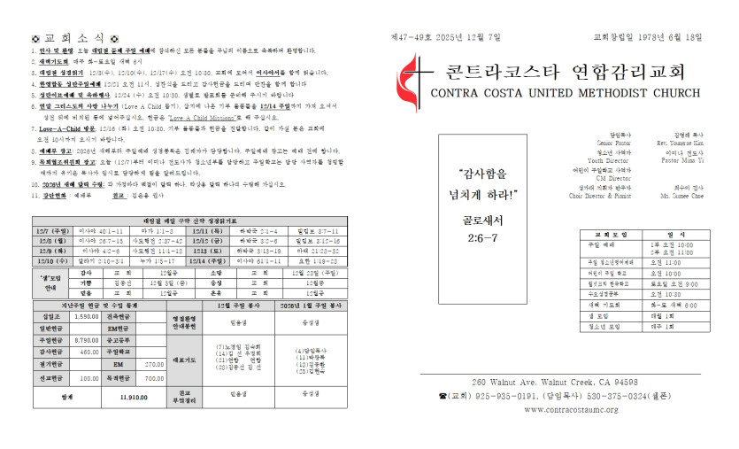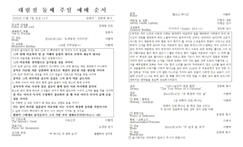 - 다음글2025년 11월 30일 대림절 첫째 주일 예배 주보 25.11.29