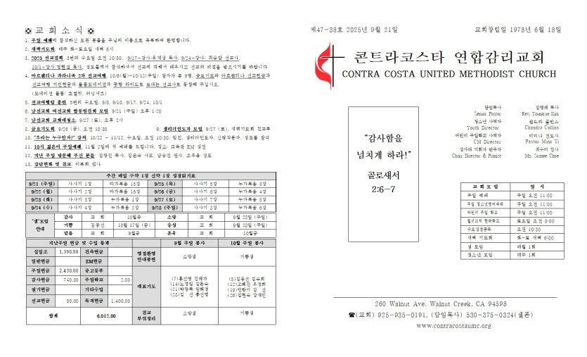 2025년 9월 21일 주일 예배 주보