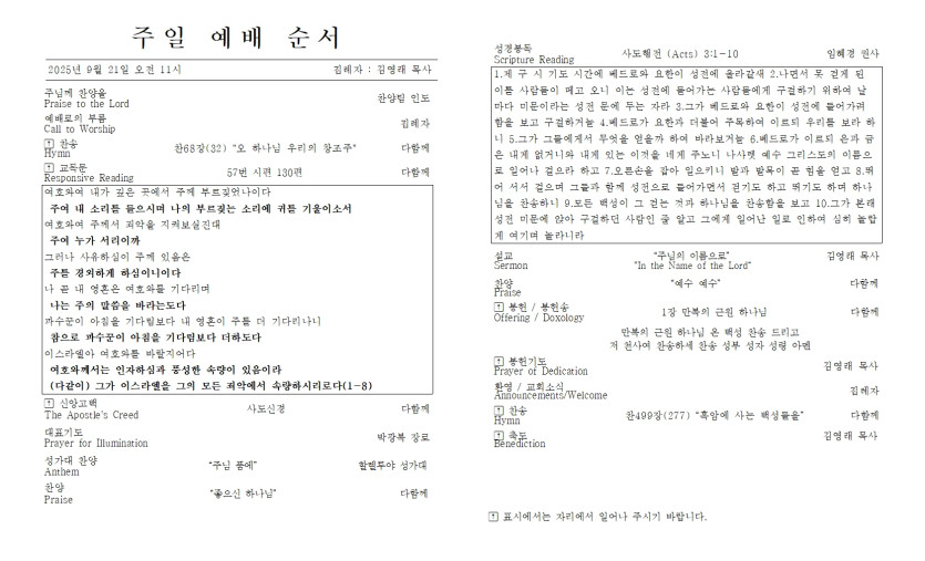 - 다음글2025년 9월 14일 주일 예배 주보 25.09.13