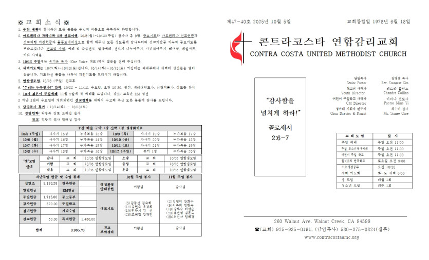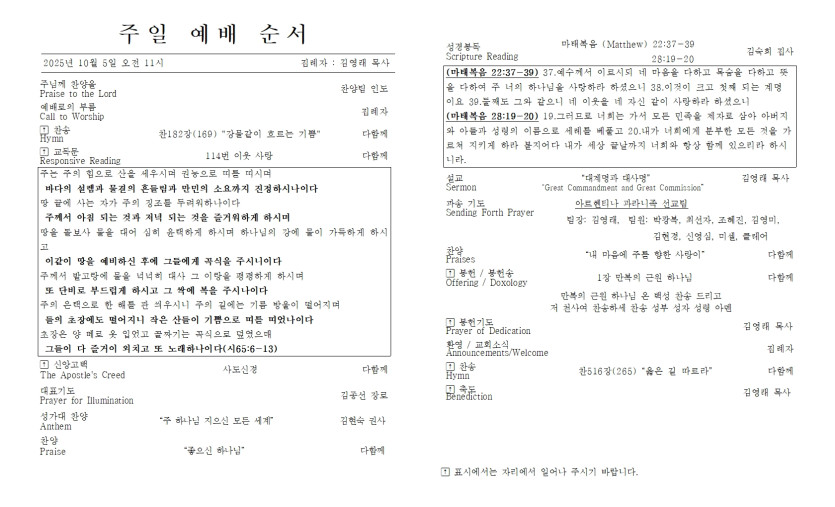 2025년 10월 5일 주일 예배 주보