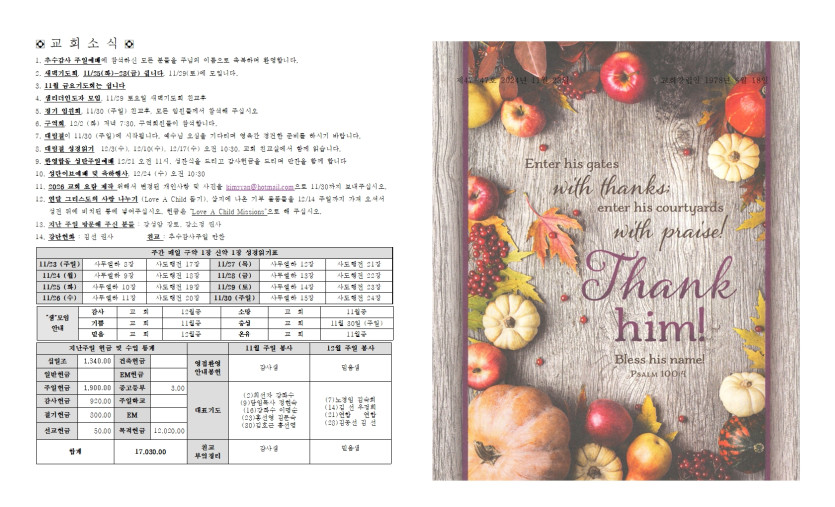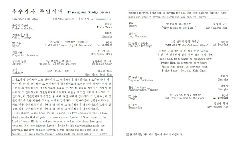 2025년 11월 23일 추수감사 주일 예배 주보 > 주보